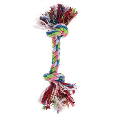 Une brosse à dents anti-stress ! Cette corde en coton, qui reprend la forme d'un os, est un jouet unique et ludique car elle favorise, par la mastication, le nettoyage des molaires, parfois difficiles d'accès, masse les gencives, racle la langue et soulage nos amis canins de leurs pulsions destructrices lorsque vous devez restez à la maison. Fabriquée en coton naturelle, celle-ci se nettoie facilement en machine ou à la main.